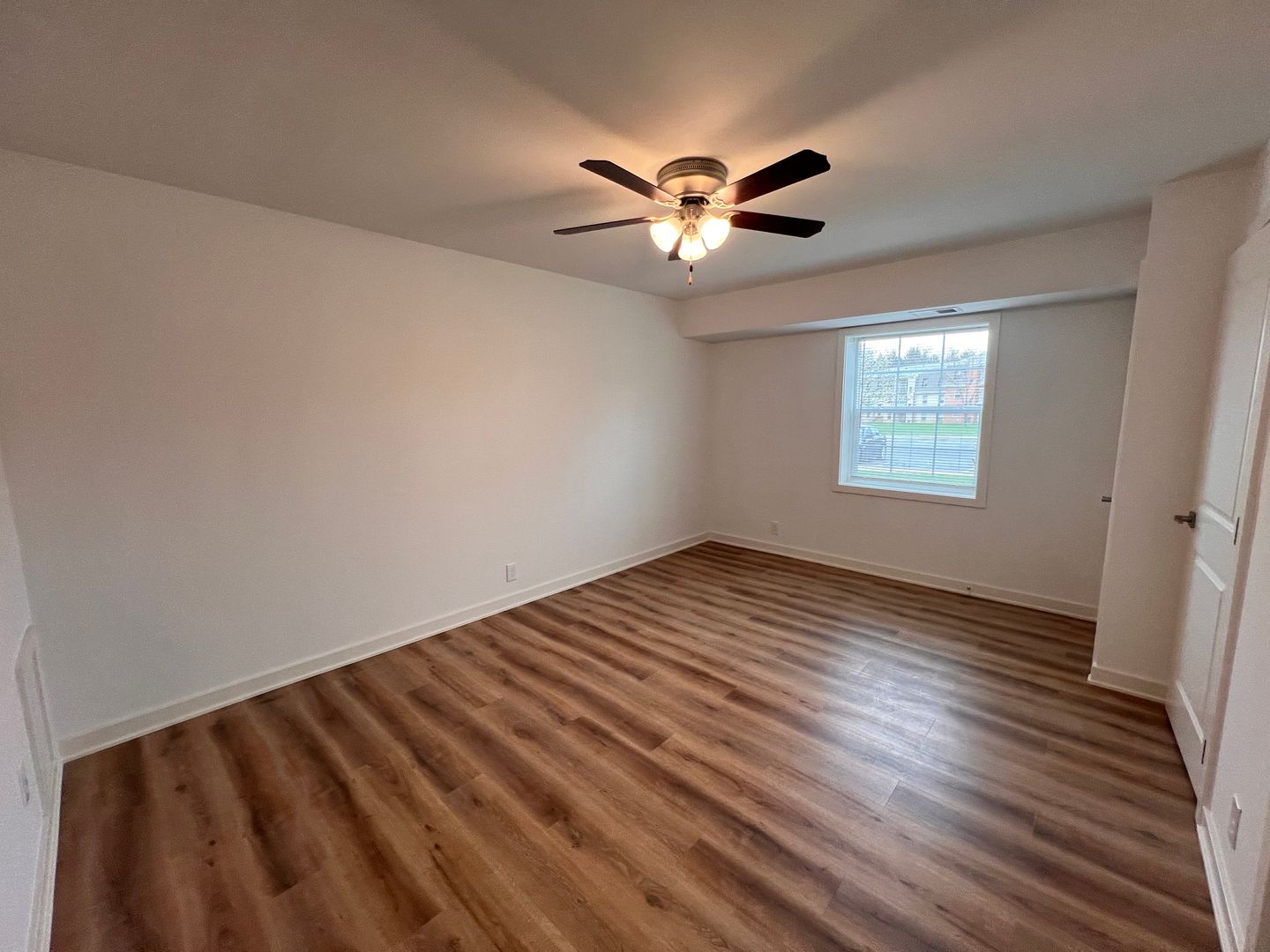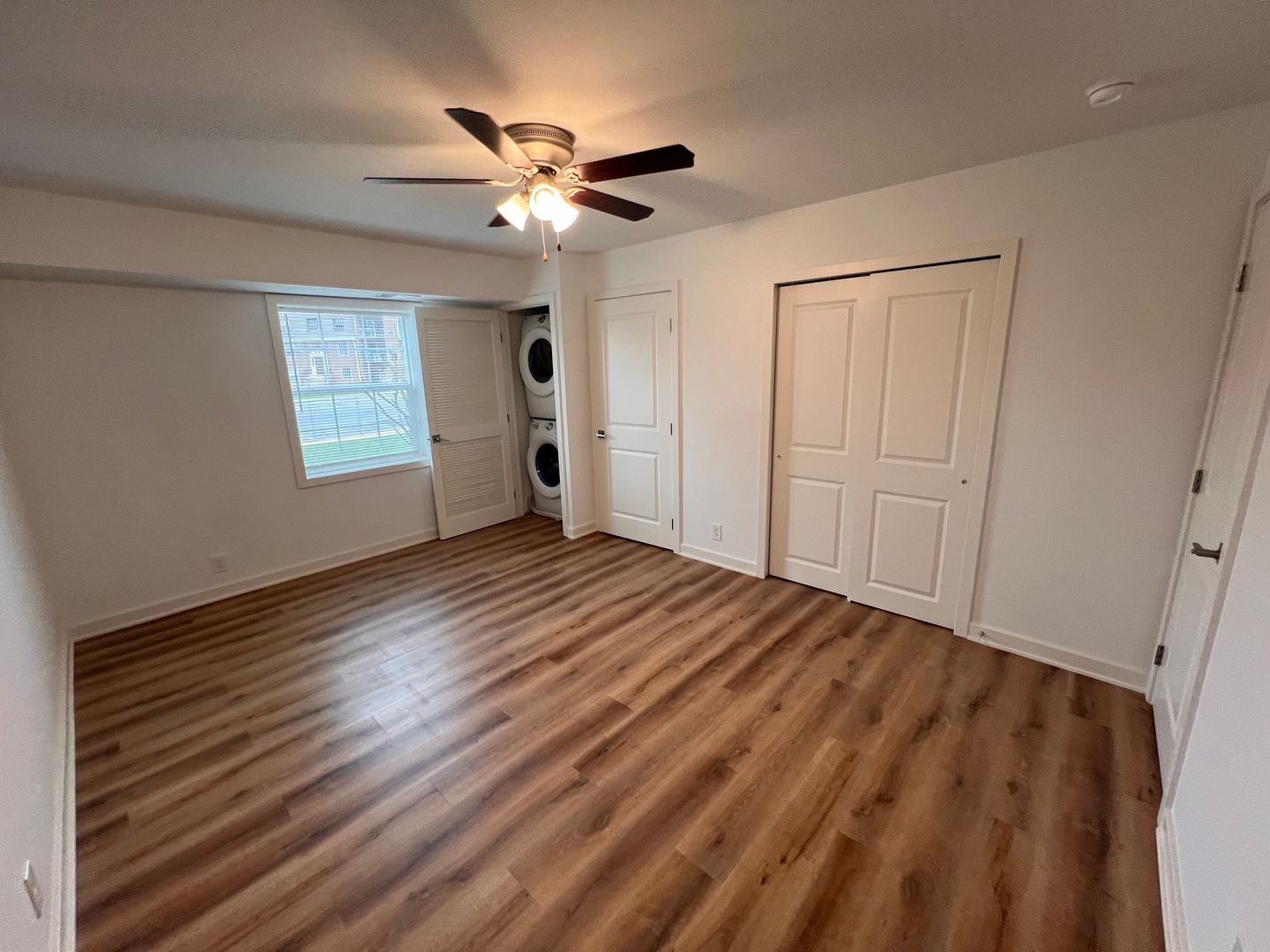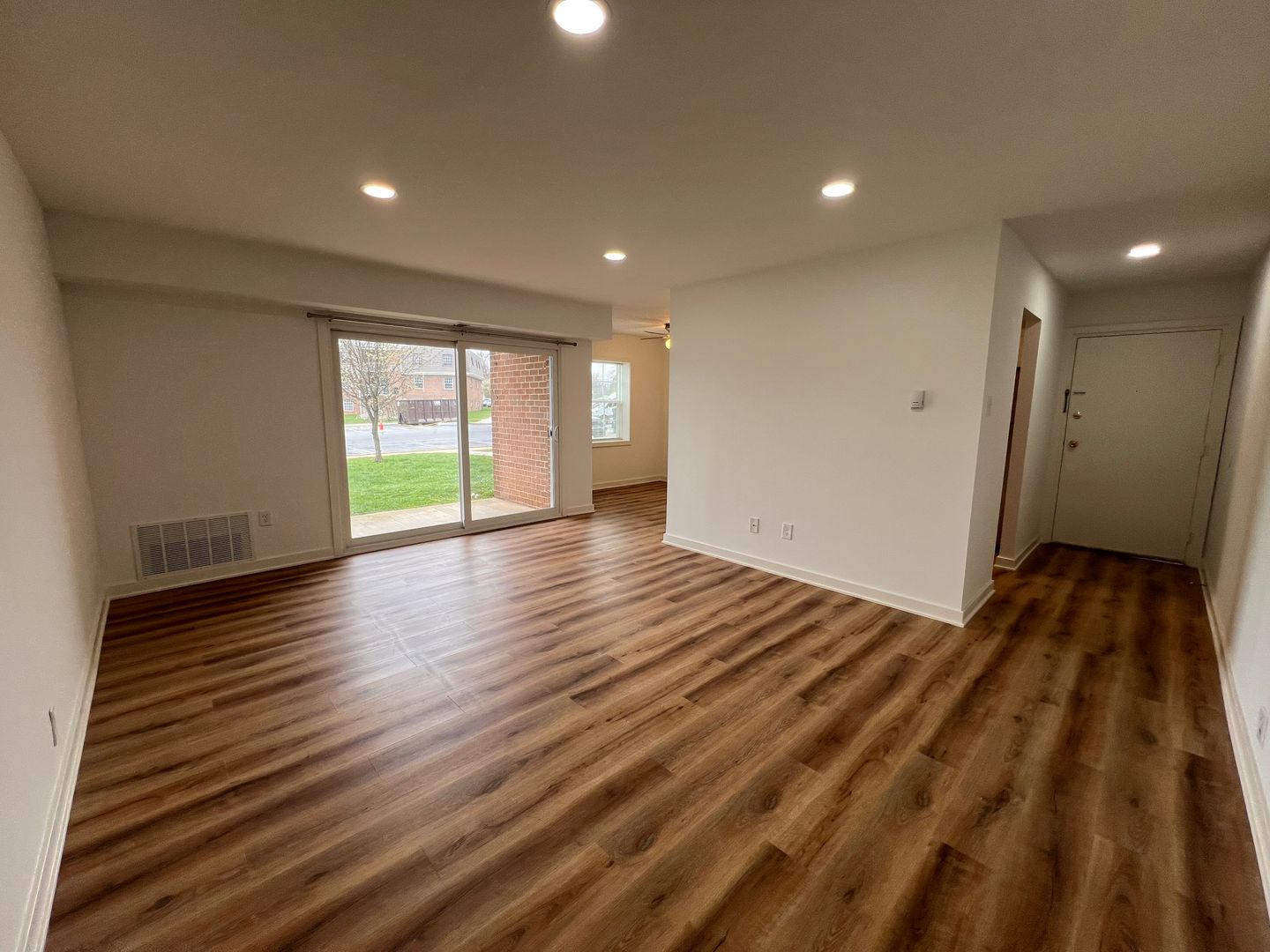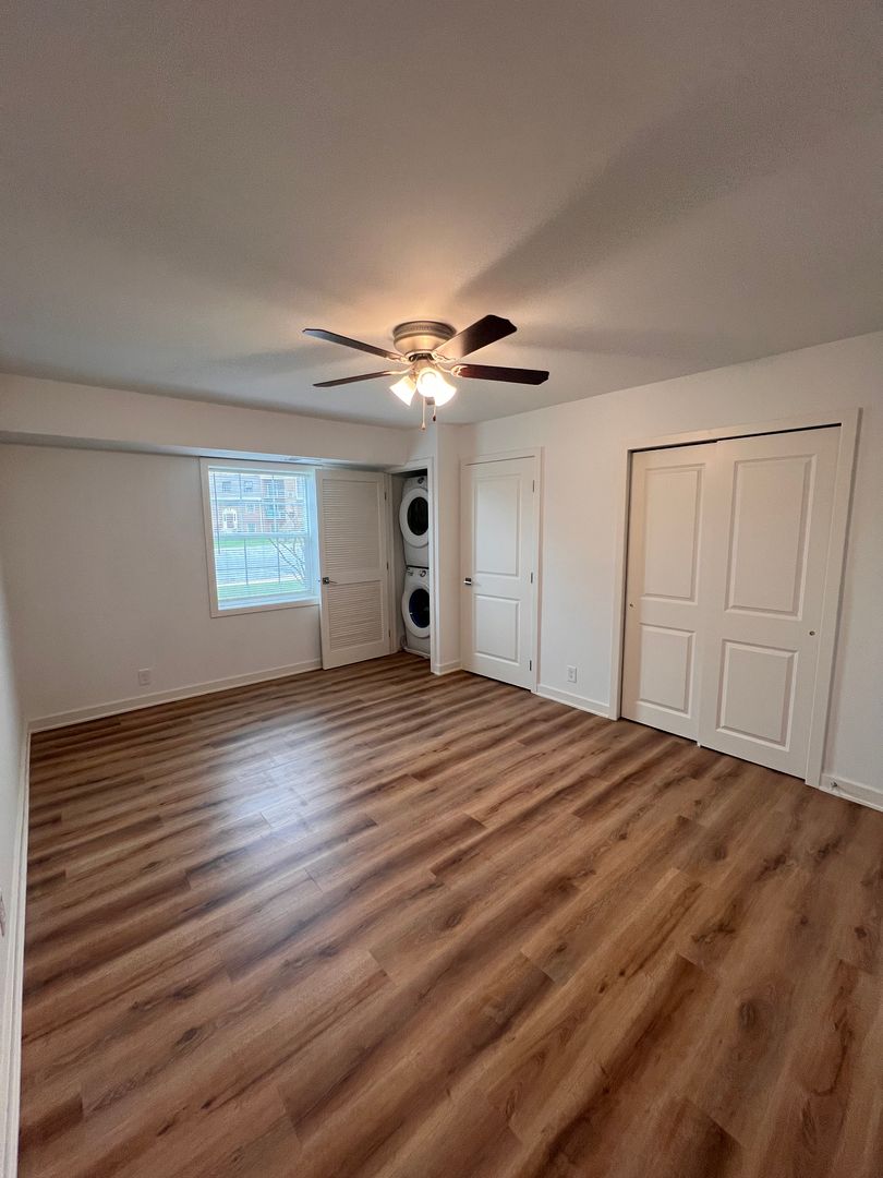 Prepare gourmet meals in a chef-inspired kitchen featuring crisp white shaker cabinetry, dark stone countertops, and a classic subway tile backsplash—all complemented by a full suite of stainless steel appliances. The main living areas boast beautiful wood-engrained LVP flooring and modern high-hat lighting, while the bedroom offers a cozy retreat with plush, premium carpeting.